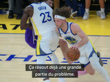 Après la défaite des Golden State Warriors contre les Los Angeles Lakers, Brandin Podziemski s'est exprimé sur sa saison avant d'évoquer les deux derniers matches de la saison régulière et les playoffs. Et il est plutôt confiant grâce notamment à la présence de Steph Curry dans l'équipe.